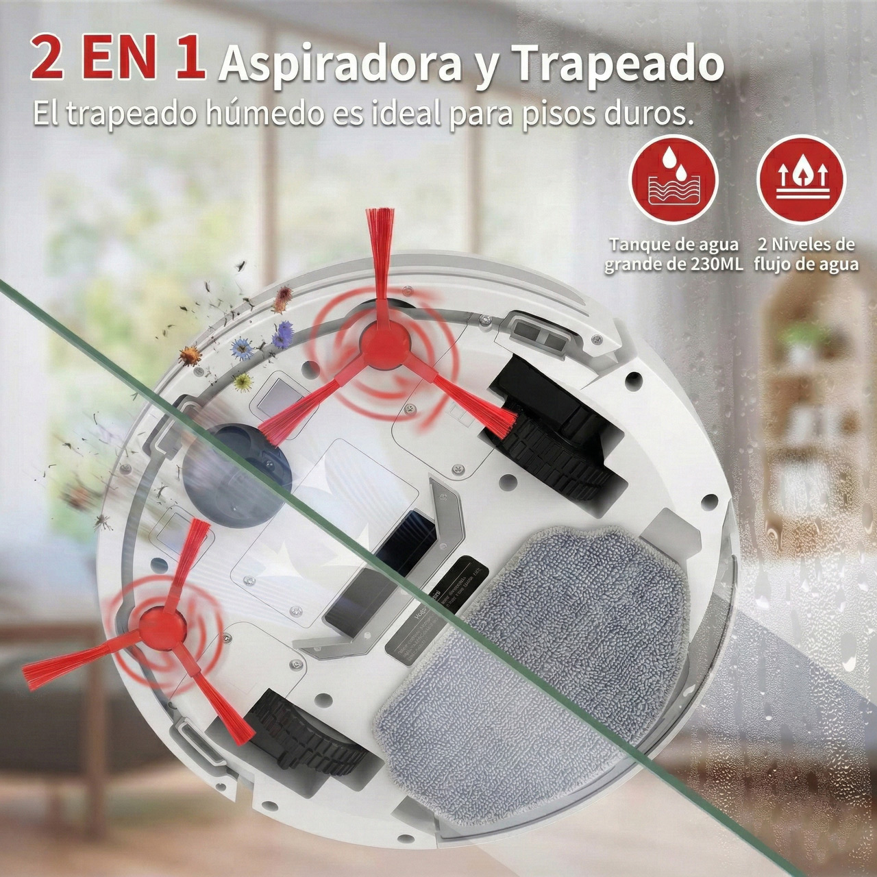 Doble Función: Aspirado y trapeado en un solo paso.